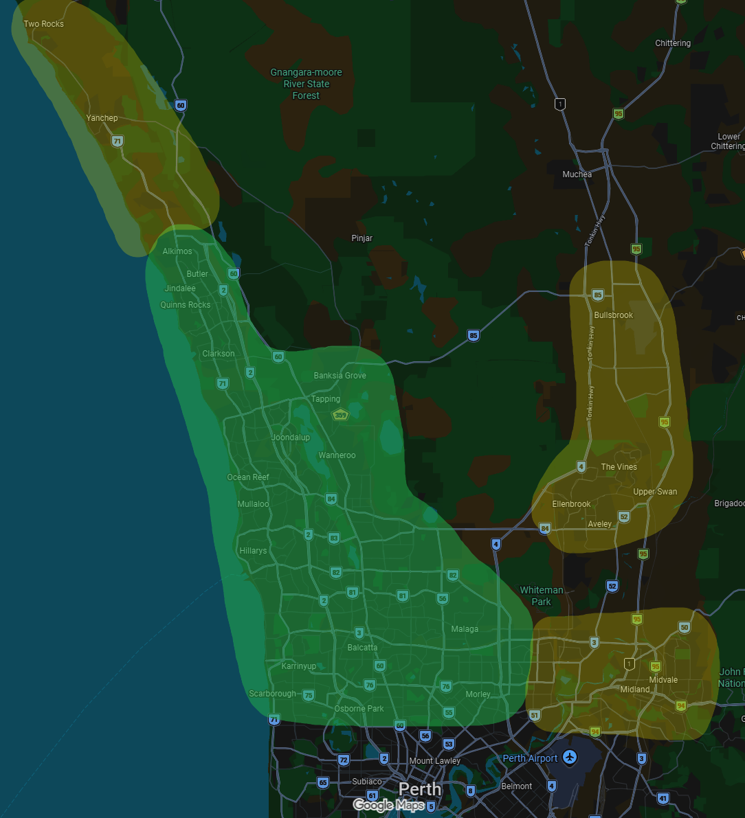 I service the entirety of the Perth Northern Suburbs, all the way up to Two Rocks.